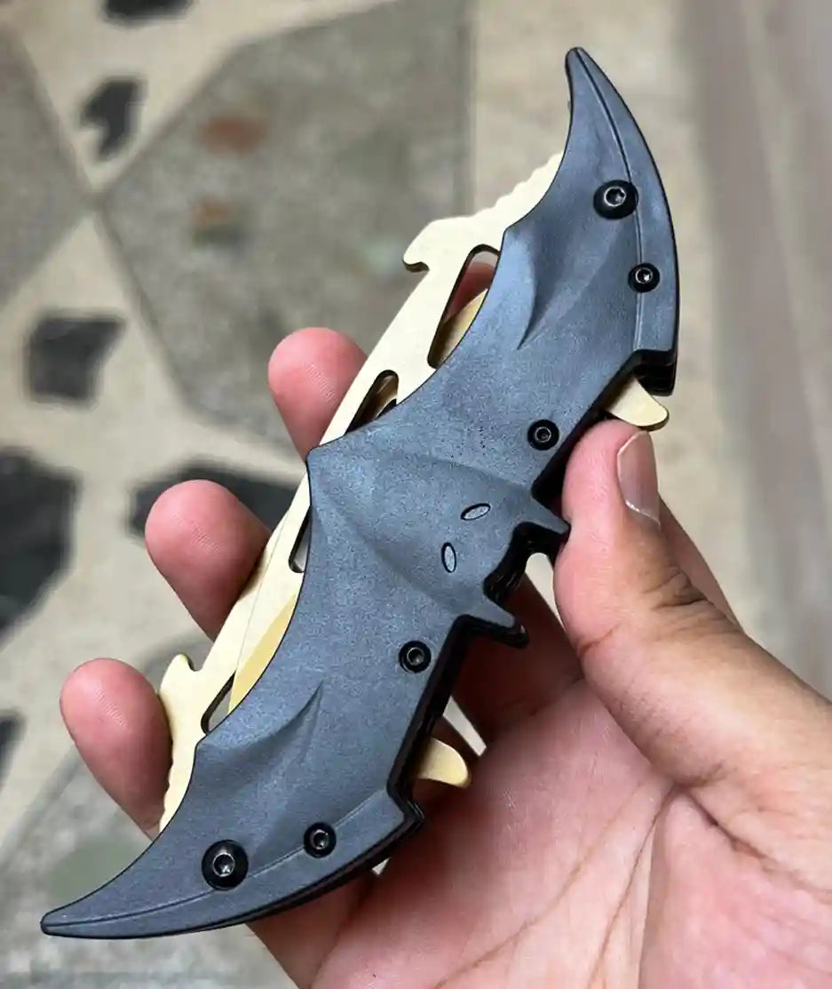 Bold and compact, the Dual Blade Batman Knife features a bat-inspired design with dual stainless steel blades. Designed for collectors and enthusiasts, this piece stands out with its unique silhouette and practical folding form.