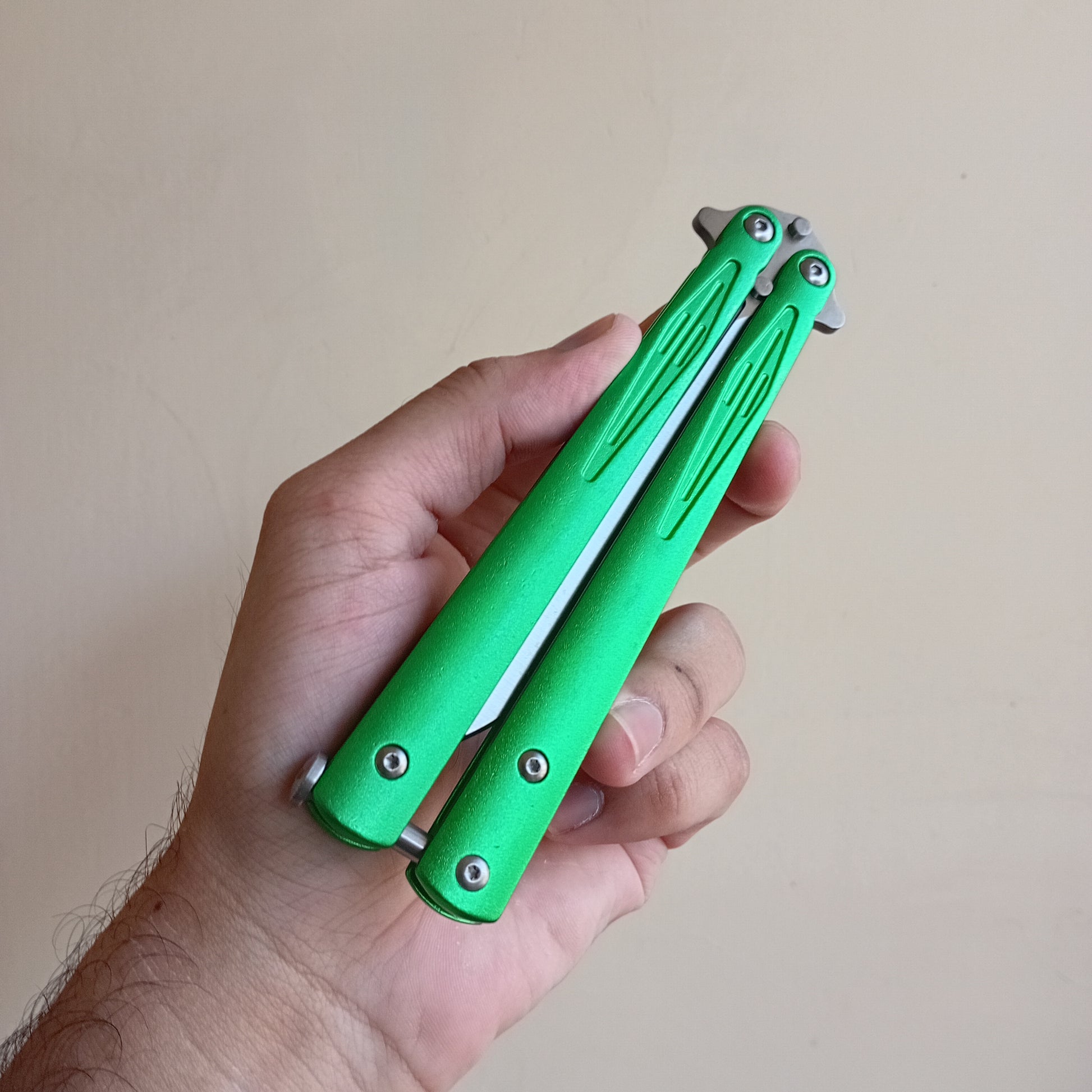 Built with lightweight aluminium handles, this balisong provides excellent balance while reducing hand fatigue. The precision-machined construction ensures rigidity where it matters, giving you confidence during fast movements and transitions.