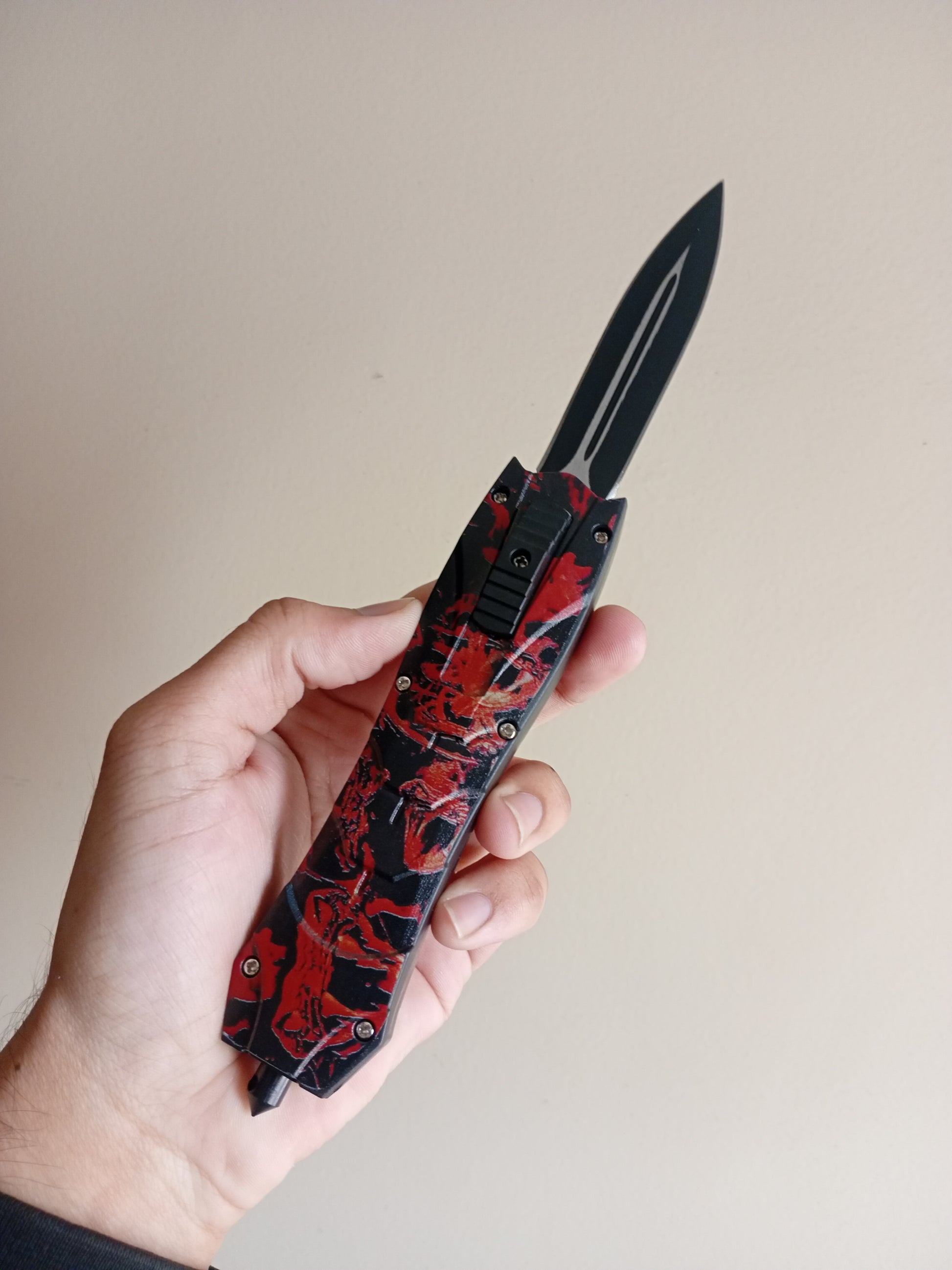Precision, Power, and Tactical Performance Looking for a premium OTF knife in Pakistan? This Blue Skull OTF Knife (Out-the-Front) is built for tactical enthusiasts, collectors, and everyday carry (EDC) users. Featuring a smooth dual-action mechanism, it deploys and retracts effortlessly, making it an ideal choice for quick access and reliability. Why Choose This OTF Knife? Designed for durability and precision, this knife boasts a 440 stainless steel blade, ensuring long-lasting sharpness and corrosion resistance. The ergonomic plastic nylon fiber handle provides a secure grip, making it comfortable for extended use. Key Features: ✔ Lightweight & Easy to Use Effortless handling for EDC and tactical use✔ Dual-Action Mechanism Quick deployment and retraction✔ Blade Material: 440 Stainless Steel Sharp, durable, and corrosion-resistant✔ Handle Material: Plastic Nylon Fiber Lightweight and impact-resistant✔ Glass Breaker Stub Emergency-ready for breaking glass✔ Pocket Clip Secure attachment for easy carrying Specifications: ✔ Overall Length: 9 inches✔ Blade Length: 3.5 inches✔ Blade Width: 1 inch✔ Handle Width: 1.2 inches✔ Blade Thickness: 0.3 cm✔✔ Weight: Approx. 120g Perfect for Tactical & Everyday Use as OTF Knife Whether you're an EDC carrier, survivalist, or collector, this Black OTF Knife delivers unmatched performance and reliability. Ideal for camping, self-defense, or display, its a must-have for any knife enthusiast. Legal Disclaimer: ✔ Must be 18 years or older or have parental permission to purchase.✔ By purchasing, Buyer accepts all responsibility and liability for use and/or misuse of this item and agrees to abide by all laws that apply to their area regarding possession and use of items. Order Your Blue Skull OTF Knife Today! Experience the best OTF knife in Pakistansleek, tactical, and built for precision. Limited stock availableget yours now!