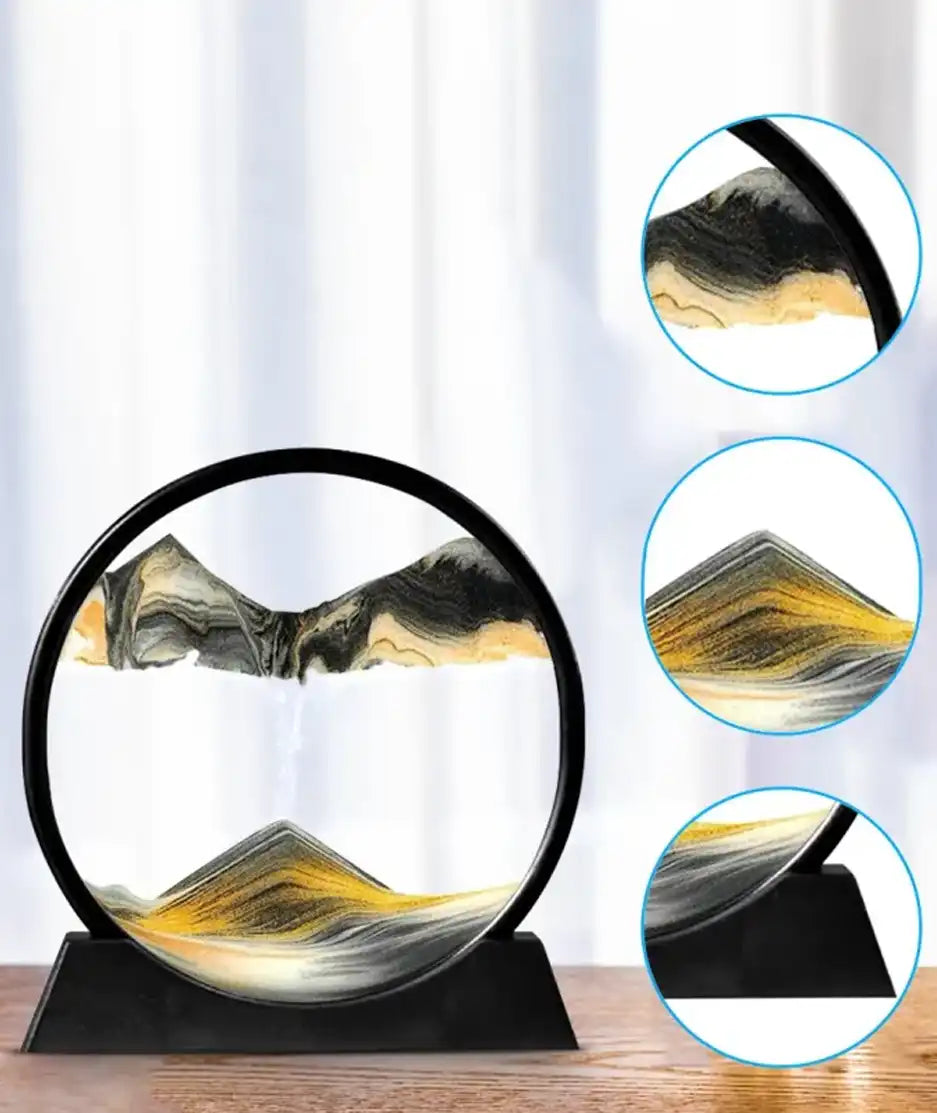 3D Moving Sand Art Lamp: Transform Any Space with Mesmerizing Motion Elevate your home or office ambiance with our stunning Sand Art Lamp, a unique decor piece that combines the beauty of ever-changing landscapes with the calming effects of natural sand movement. This captivating 3D moving sandscape is more than just a lamp; its a piece of art that brings tranquility, relaxation, and even positive energy to any room. A Unique Blend of Art and Nature Our Sand Art Lamp features high-transparency glass, as clear as water droplets, allowing you to fully immerse yourself in the mesmerizing motion of quicksand. Carefully selected, colorful sand grains are layered to create vivid 3D patterns that mimic the beauty of nature, forming stunning mountain-like effects with each rotation. Whether you're seeking a touch of elegance for your living space or a conversation starter for your office, this sand art lamp delivers both in spades. Dynamic, Ever-Changing Scenery One of the most fascinating aspects of the Sand Art Lamp is its ability to create new landscapes every time you turn it. The glass sand picture frame can be rotated freely in 360 degrees, causing the sand to cascade in different patterns each time. Watch as the sand falls slowly, forming new and unique scenes that are both captivating and relaxing. This dynamic motion not only soothes the eyes but also helps reduce stress and inspire creativity. Enhance Your Space with Tranquility More than just a decorative piece, the Sand Art Lamp is designed to promote a sense of calm and relaxation. The slow, graceful movement of the sand is ideal for meditation, reducing anxiety, and improving focus. It's perfect for office workers, students, and anyone who spends long hours in front of a computer. The serene beauty of this lamp also makes it a thoughtful gift for friends, family, or colleagues. Easy to Use and Maintain Sand Art Lamp Operating the Sand Art Lamp is simple. Just follow a few easy steps to set up and enjoy the mesmerizing sandscapes. The lamp comes with a removable base, making it easy to place anywhere in your home or office. If needed, a syringe is included to help you adjust the bubble levels, ensuring the perfect flow of sand every time. Perfect for Any Occasion Whether you're looking to add a touch of elegance to your space or searching for the perfect gift, the Sand Lamp is an ideal choice. Its unique design, combined with the soothing motion of sand, creates a one-of-a-kind visual experience thats sure to impress. Transform your living or work space with the calming, ever-changing beauty of our Sand Scape Lamp. Perfect for anyone seeking a blend of art, nature, and tranquility, this lamp is not just a decor pieceit's an experience. Order yours today and bring the mesmerizing motion of sand into your life.